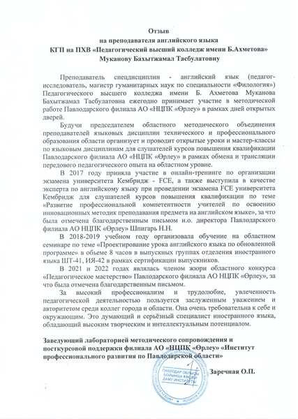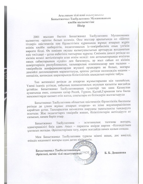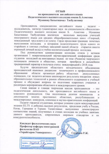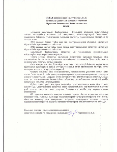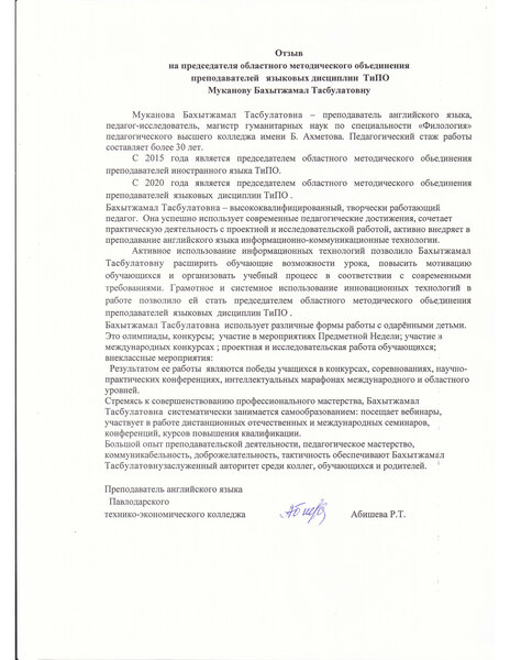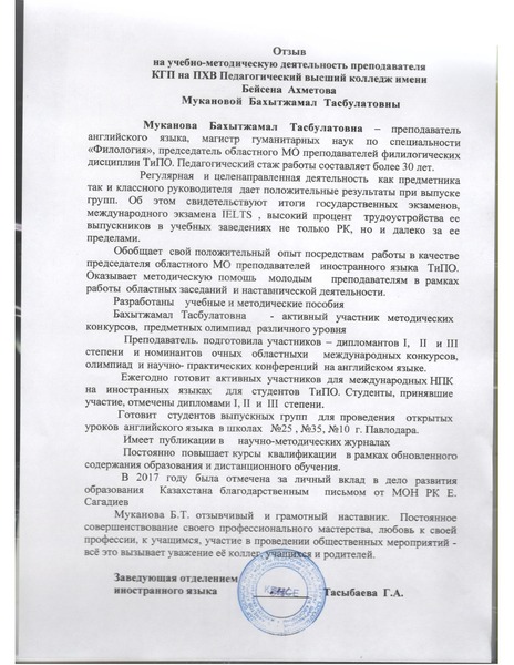 Я преподаватель английского языка, педагог-исследователь, магистр гуманитарных наук по специальности «Филология», председатель областного МО преподавателей языковых дисциплин (казахский, русский, английский) ТиПО.