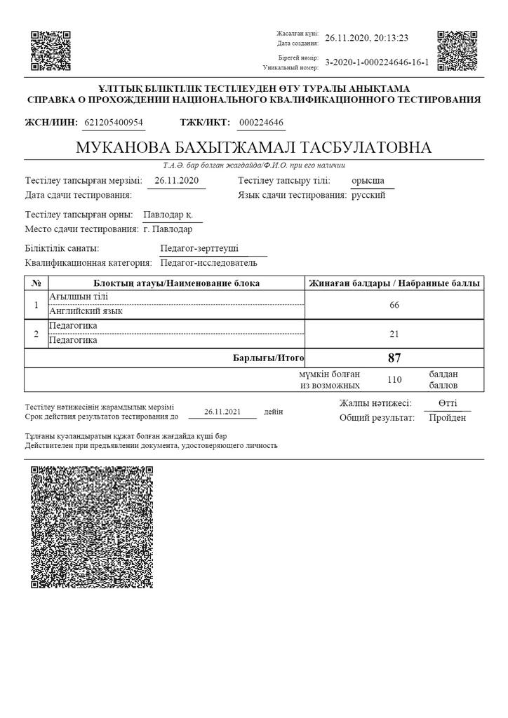 Я – исследователь, широко использую технологию развития критического мышления, информационно-коммуникационные технологии, а также метод коммуникативных заданий TBLT - Task Based Learning and Teaching, имею отличную теоретическую и языковую подготовку.